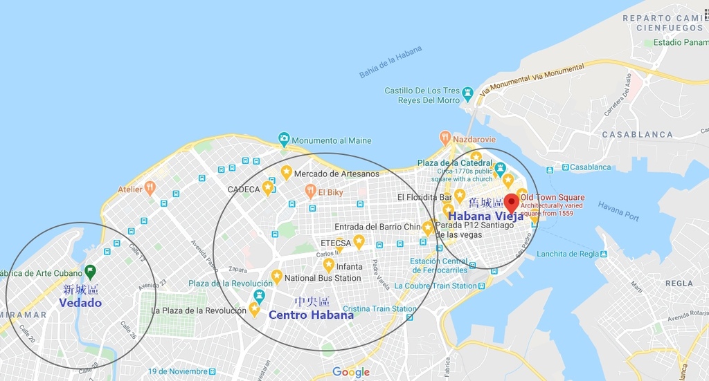 Vedado屬於新城區,著名的革命廣場、觀光客搭乘的Viazul長途巴士總站都在這區