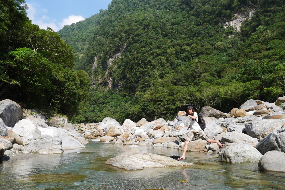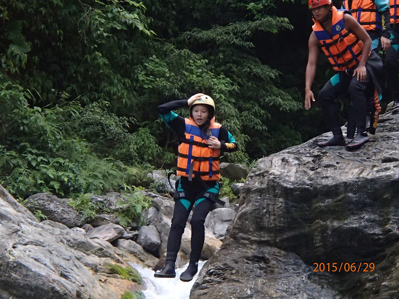 夏天去花蓮非常適合體驗溯溪活動,依照個人需求可參加半天或全天,溯溪業者也會讓你在溪中,玩各式各樣的小活動像是跳水等,這張是多年前去溯溪玩3公尺跳水的驚恐照片,還有五公尺跳水可以體驗,落水角度沒抓好會比較痛