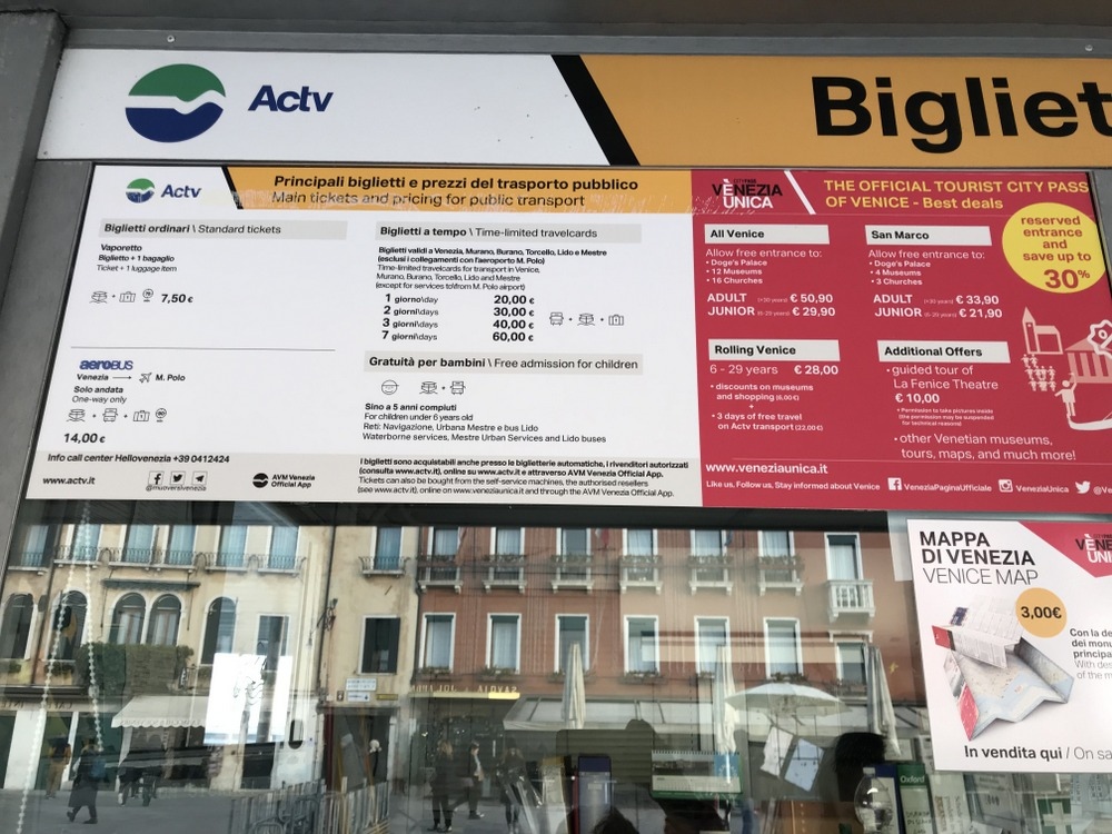 Ferrovia是S. Lucia火車站前的碼頭站名稱,有販售人工&機器交通券,可搭乘水上巴士和公車