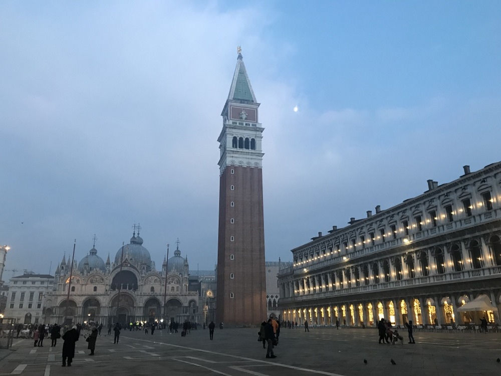 是威尼斯最知名的標誌之一,也是最高的建築, 高 98.6 米(323 英尺), 建築始於 10 世紀初期,隨著時間的推移塔的高度也慢慢升高,不過這座歷史悠久的塔樓於 1902 年倒塌,現在的鐘樓是 1912 年完成的重建