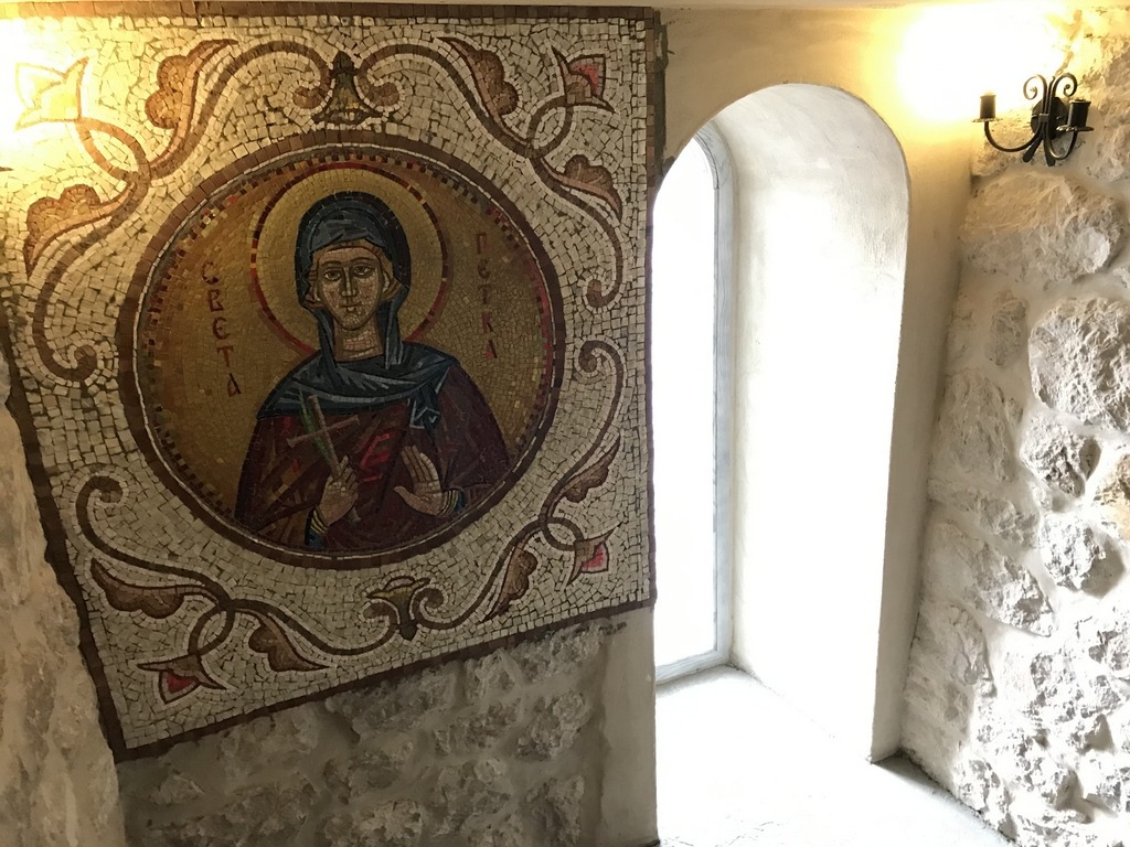 教堂中以多幅濕壁畫裝飾,描述聖尼古拉、聖本篤生平和舊約等故事,另外還有擺放管風琴,教堂內部略小可以快速參觀完畢
