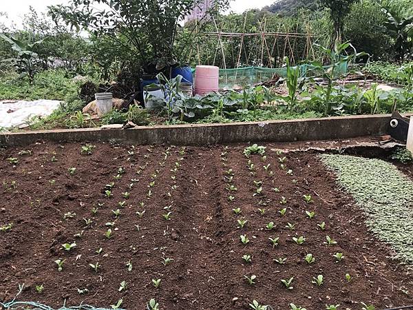 其中一段步道旁有當地居民種植的蔬菜農園,到達涼亭後有岔路往前走會通往北投,右轉會到「貴子坑水土保持教學園區」