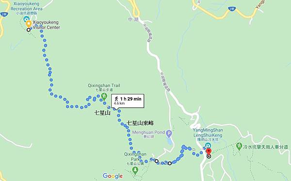 從七星東峰健行約30分鐘可經過七星公園和夢幻湖,再步行40分鐘即可到達冷水坑登山口,完成今天的登山路線,而且很方便的是在冷水坑遊客服務站前就有公車可搭車下山