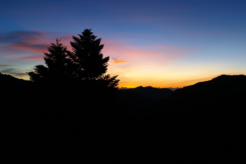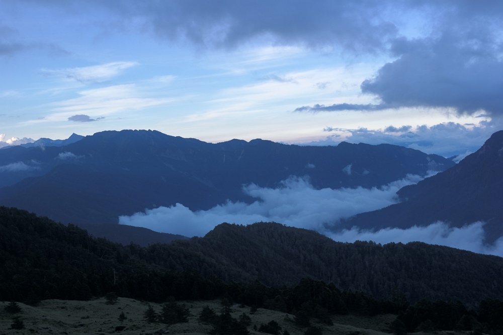 海拔2180公尺且路線不長,但這是第一次攀爬鳶嘴山沒有經驗,怕看完夕陽下山天黑山路不熟,拍完照就離開了,希望下次有機會再來看日落時的美景