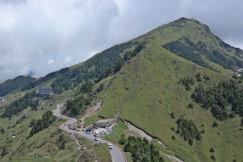 前方山路上就是合歡山主峰