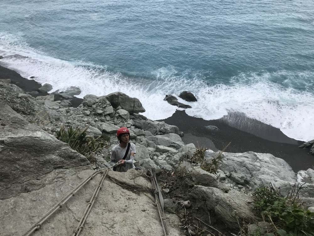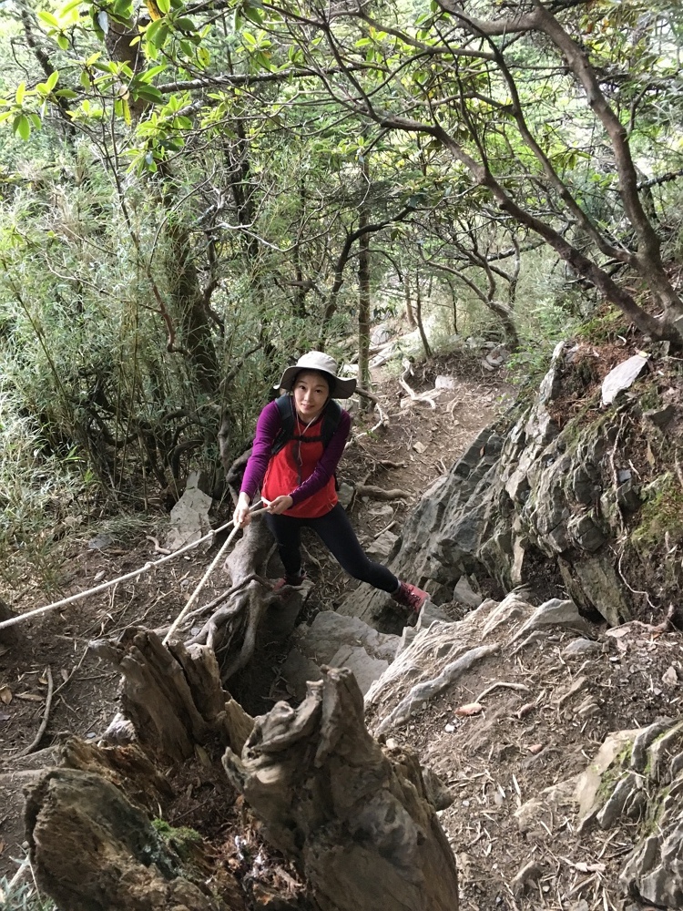 從這裡有一大段的天然攀岩場要挑戰,雖然每一步都有明顯的踩點,但對於腿短的我有點辛苦,要很努力伸長腳才踏的到