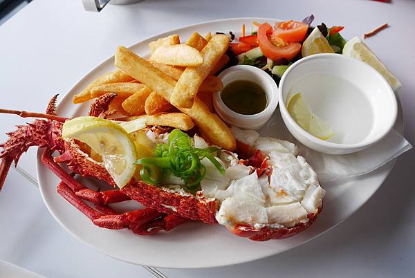 來自中南美洲的冷凍龍蝦,乾煎蒸熟,淋上蜂蜜芥末和咖哩調配的醬汁,讓龍蝦吃起來有不同的層次,如果不沾醬單吃龍蝦肉有點鹹