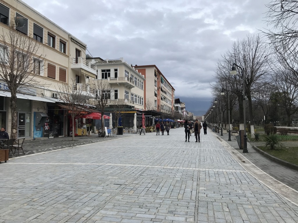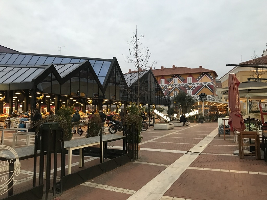 一個很乾淨小型露天集市,有許多攤商在販賣多種新鮮農產品、水果、堅果、煙草、肉類、魚類、雞肉等,兩旁則是有些餐廳和咖啡館,供應 阿爾巴尼亞的傳統和歐式食品和糕點